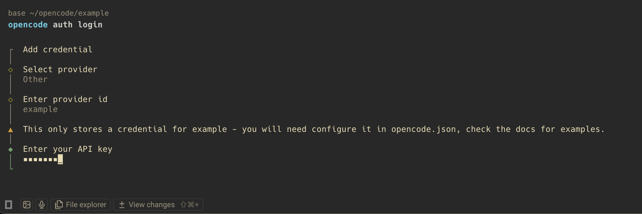 Это тот самый идентификатор, который мы указали во время opencode auth login. А вот apiKey тут можно указывать совершенно любой. Напомню, что реальный ключ мы указали в настройках прокси, а в этом конфиге самое главное — правильно указать адрес прокси:
