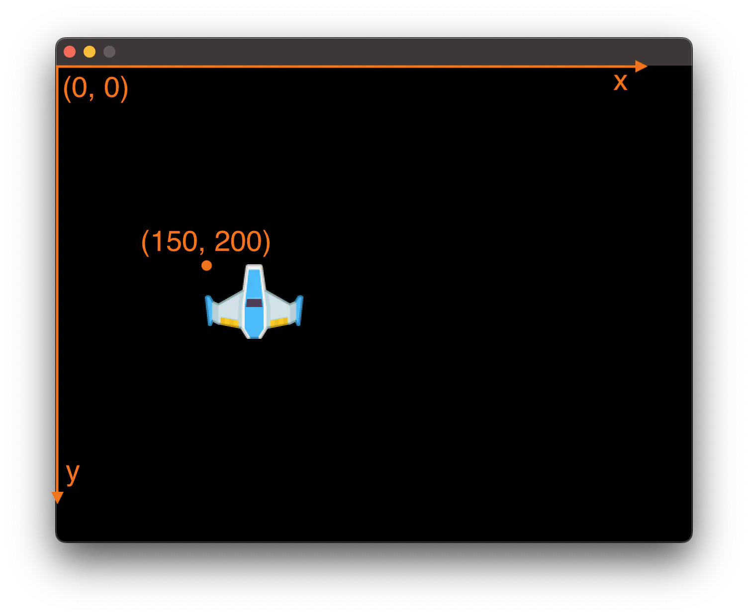 При рисовании используются координаты X и Y, при этом ось Y направлена вниз. По умолчанию всё рисуется в точке (0, 0), то есть в верхнем левом углу базового изображения.